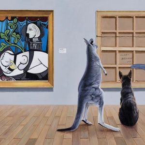 Lai Shengyu and Yang Xiaogang’s collaborations are part of the new trend of Chinese contemporary art where thought exercises are staged on canvas. The two artists co-paint, co-operate and co-practice, placing emphasis on communication and dialogue, both in the process and results of their work. Before beginning a work, a general theme and setting may be discussed, while the rest of the conversation occurs through the painting as they alternate working on the piece, continuously adding upon the other’s work, with neither having the right to erase the work of the other.