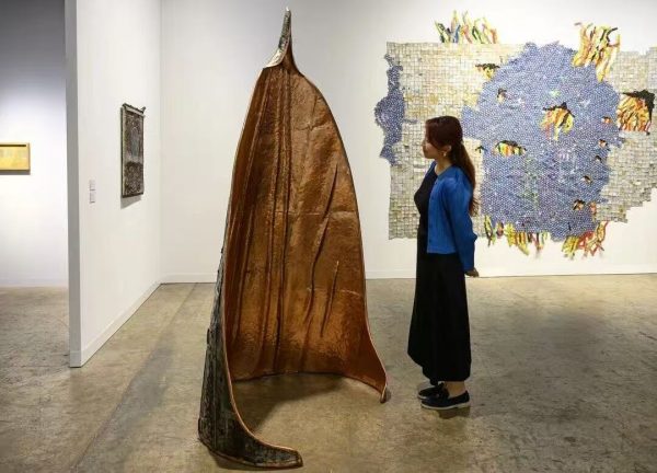 Stalk 4 (2025), made of aluminum and copper, rises in a narrowing curve reminiscent of a bamboo shoot—reflecting the artist’s ongoing exploration of organic forms like seeds, pods, and growth.