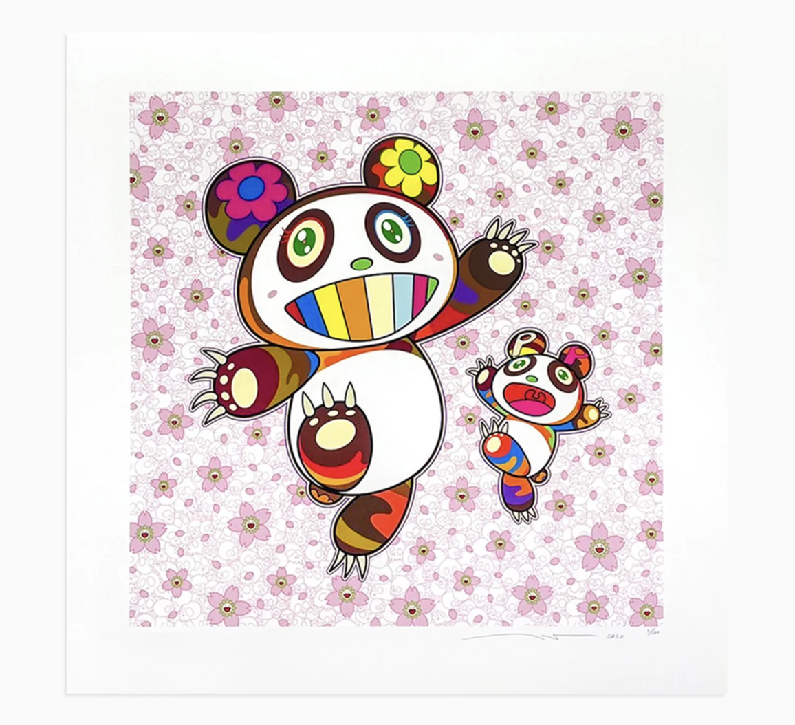 Previewing "Panda Parent and Cub in a Shower Cherry Blossom by Takashi Murakami" in a room